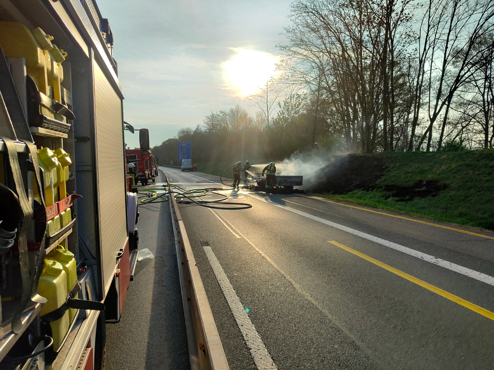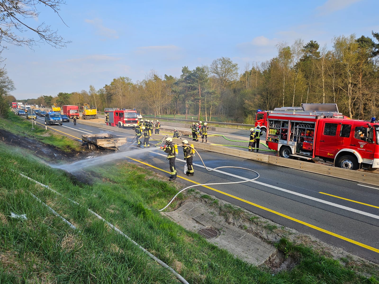 Wir wurden zu einem brennenden Anhänger auf der BAB 37 gerufen. Da es sich um einen relativ großen Anhänger voll beladen mit Holz handelte und bereits die Böschung anfing zu brennen, wurde bereits zu Beginn ein hohes Alarmstichwort durch die Leitstelle alarmiert.