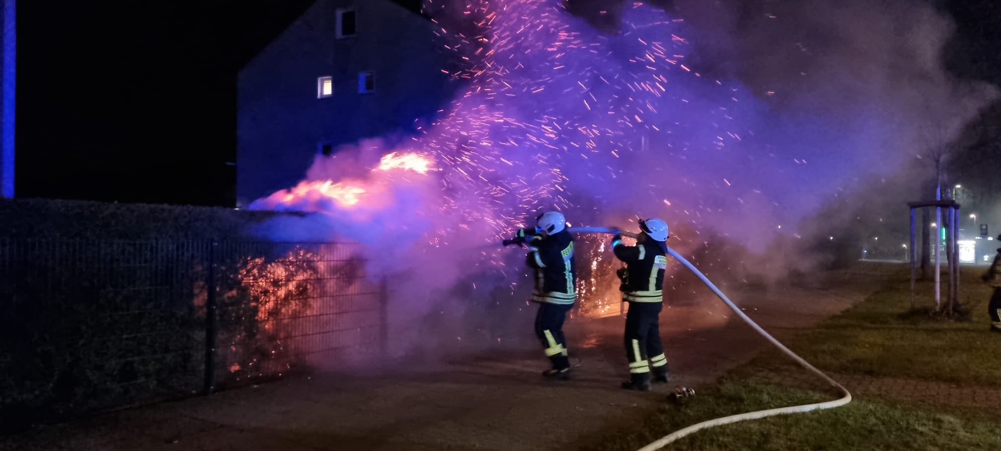 – brennende Feuerwerksbatterien an Garagen